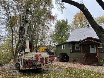 Forage d'un puits crépiné pour une résidence située en bordure du Lac-William à Saint-Ferdinand. Une collerette était nécessaire en raison de la proximité du roc.