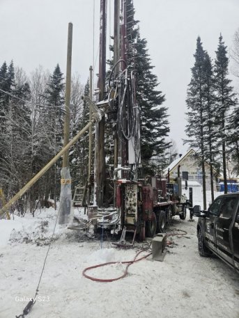 Forage d'un puits artésien pour une nouvelle résidence située sur la rue du Mont-Férréol à Saint-Férréol-les-Neiges. Une pompe submersible a par la suite été installée dans le puits pour alimenter la maison en eau.