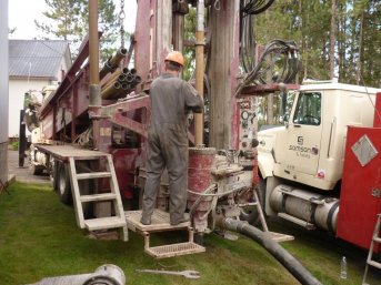 Forage d'un puits artésien scellé pour une résidence de Saint-Hilarion, Charlevoix. Une pompe submersible en acier inoxydable a par la suite été installée dans le puits artésien pour alimenter la maison en eau potable