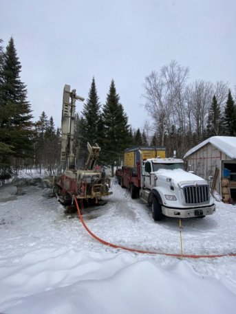 Forage d'un puits artésien pour une nouvelle résidence située sur la rue Principale à Saint-Hilarion dans Charlevoix. Une pompe submersible a par la suite été installée dans le puits afin d'alimenter la maison en eau.
