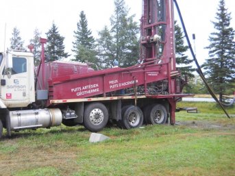 Forage d'un puits artésien pour une résidence située sur la route 362 à Saint-Irénée dans Charlevoix. Une pompe submersible a par la suite été installée dans le puits artésien afin d'alimenter la résidence en eau potable.