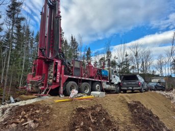 Forage d'un puits artésien pour une nouvelle résidence construite sur le Chemin des Haut-Bois à Saint-Irénée dans la région de Charlevoix. Une collerette de bentonite était nécessaire en raison de la proximité du roc. Une pompe submersible a par la suite été installée dans le puits.