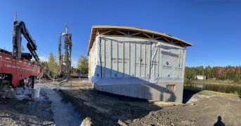 Forage d'un puits artésien pour une nouvelle résidence située sur la rue Deslauriers à Saint-Léon-de-Standon. Une collerette de bentonite était nécessaire. Une pompe submersible a par la suite été installée dans le puits afin d'alimenter la maison en eau.