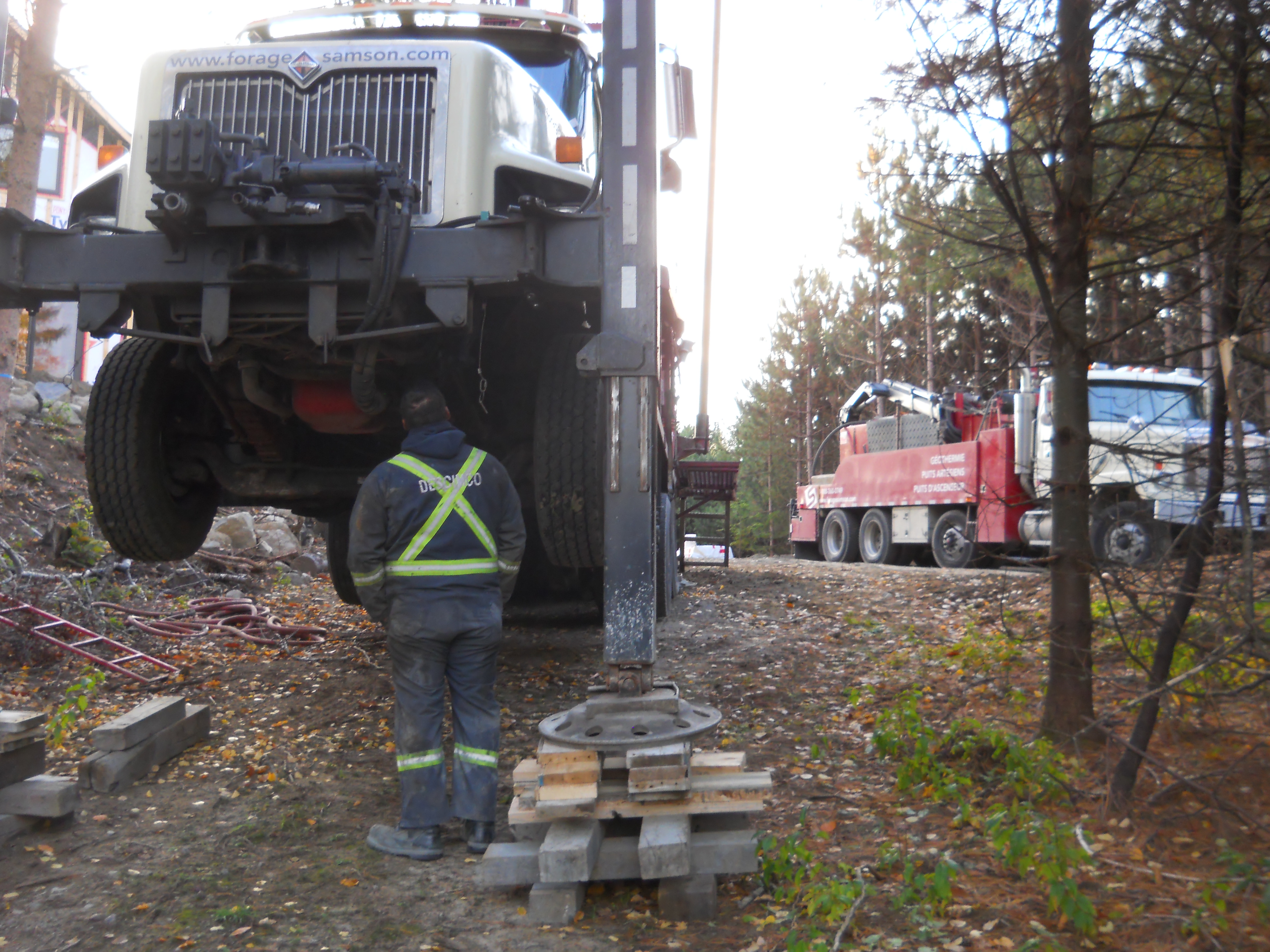 Forage d'un puits artésien pour une nouvelle résidence située sur le rang Grand-Bernard à Saint-Léonard-de-Portneuf dans le comté de Portneuf. Une pompe submersible en acier inoxydable a par la suite été installée dans le puits artésien afin d'alimenter la maison en eau potable.
