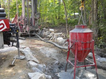Forage d'un puits artésien pour une nouvelle résidence située en bordure du Lac-Sept-Iles à Saint-Raymond de Portneuf. Le puits artésien devait être scellé avec une collerette de bentonite en raison de la proximité du roc. Une pompe submersible a par la suite été installée dans le puits artésien afin d'alimenter la résidence en eau potable.