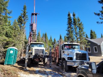 Forage d'un puits artésien pour une nouvelle résidence située sur le Chemin des Mines à Saint-Urbain de Charlevoix. Une pompe submersible a par la suite été installée dans le puits afin d'alimenter en eau la maison.
