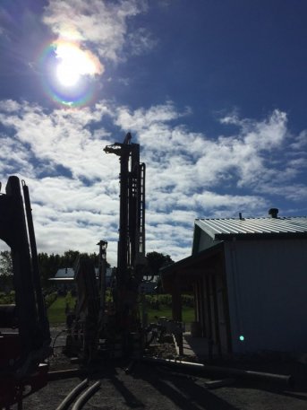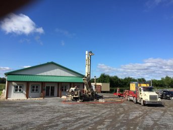 Forage d'un puits artésien d'un diamètre de 8 pouces pour le Vignoble Sainte-Pétronille sur l'Ile-d'Orléans. Une collerette de bentonite était nécessaire en raison de la proximité du roc. Une pompe submersible en acier inoxydable a par la suite été installée dans le puits artésien afin d'alimenter le bâtiment en eau.