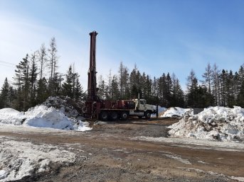 Forage d'un puits artésien pour une nouvelle résidence située sur la rue Gagné à Shannon. Une pompe submersible a par la suite été installée dans le puits afin d'alimenter la résidence en eau.