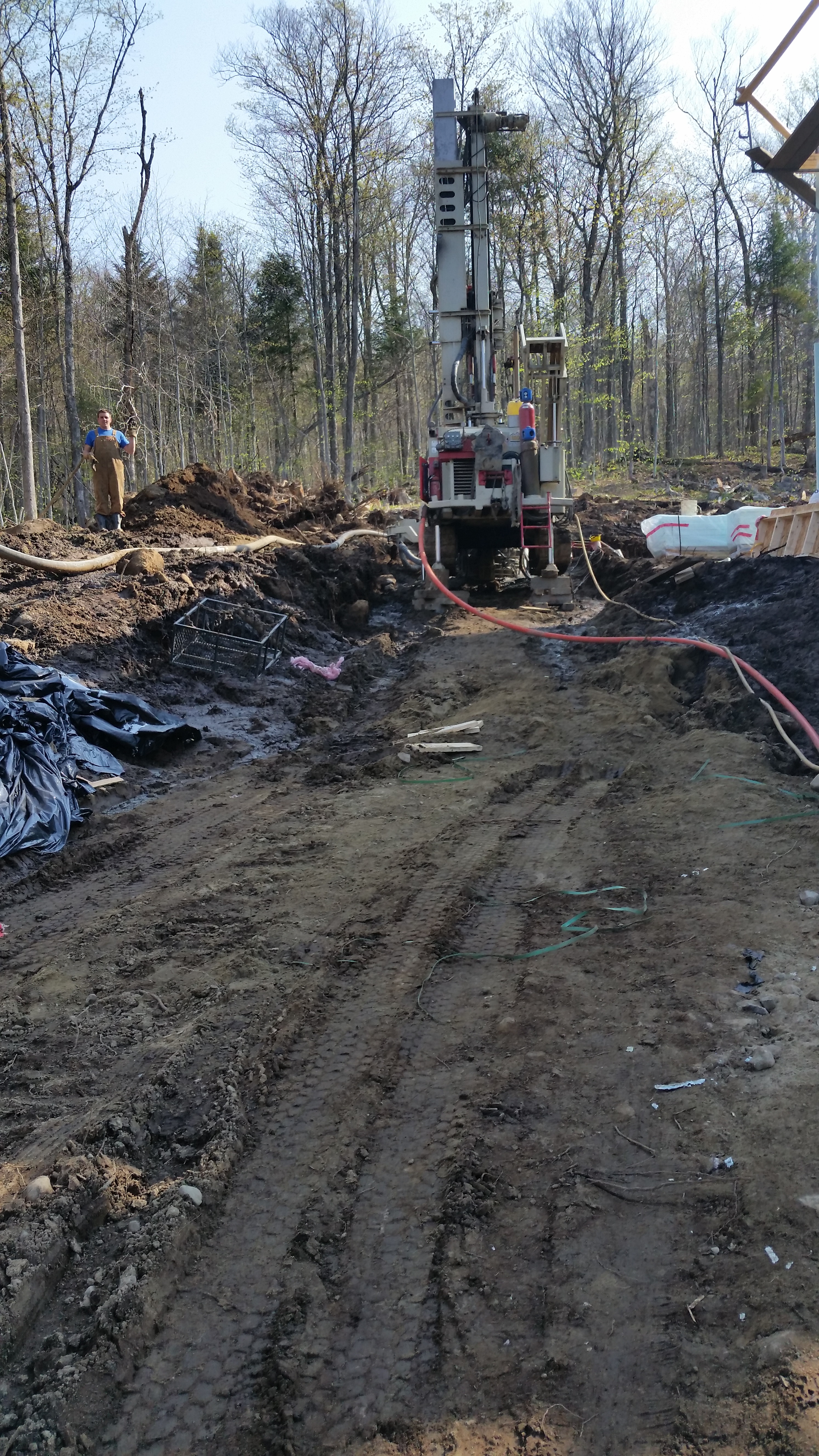 Forage d'un puits artésien pour une nouvelle résidence située sur le Chemin des Chanterelles dans le projet Aube 260 à Stoneham. Une collerette de bentonite était nécessaire en raison de la proximité du socle rocheux. Une pompe submersible a par la suite été installée dans le puits artésien afin d'alimenter la maison en eau potable.