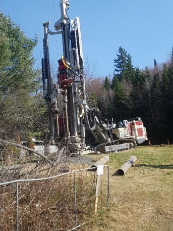 Forage d'un puits artésien pour une nouvelle résidence située sur l'avenue Tewkesbury à Stoneham. Une collerette de bentonite était nécessaire. Une pompe submersible en acier inoxydable a par la suite été installée dans le puits.